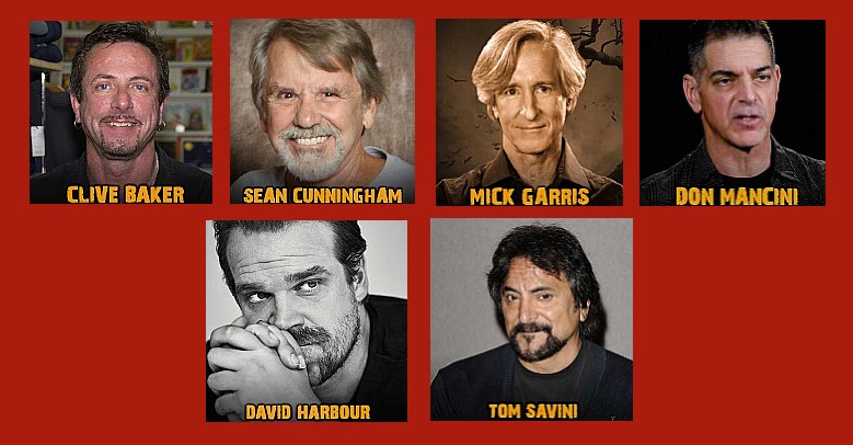Garris (Director: The Stand, Nightmare Cinema, Sleepwalkers) and Don Mancini (Creator: Chucky franchise) and as well as iconic actors and artists, such as David Harbour ("Jim Hopper" from Stranger Things; Hellboy) and